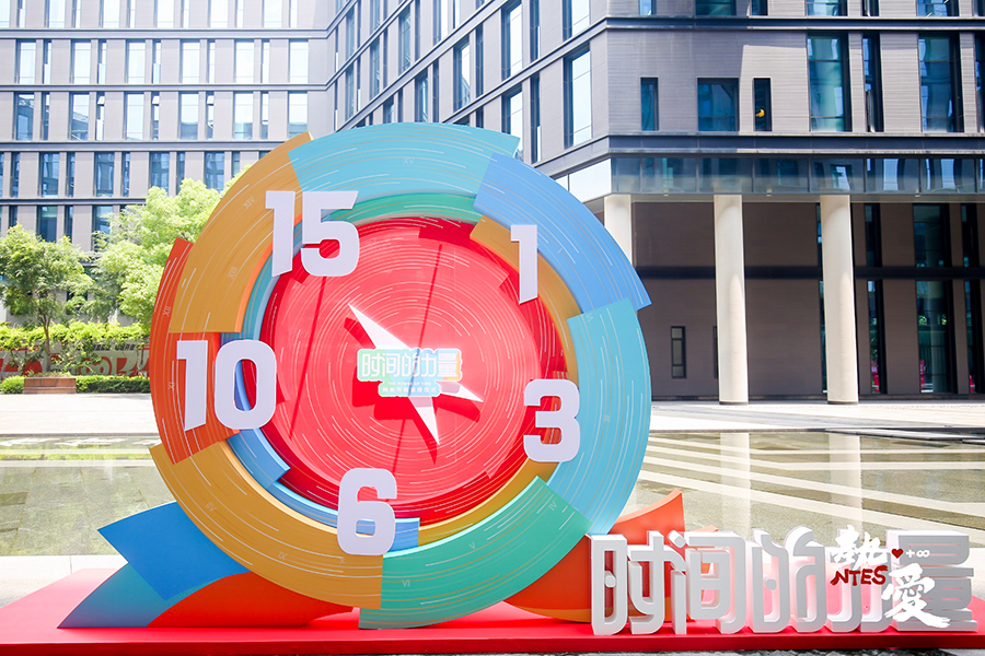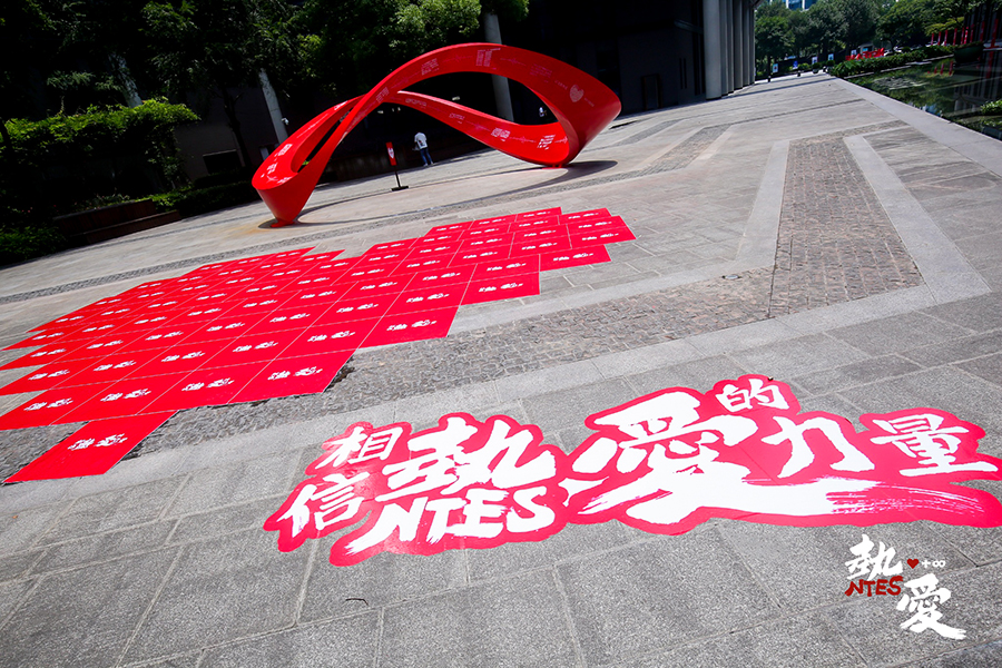 其中一大亮點(diǎn)就是將網(wǎng)易20周年大事記做成巨型同心結(jié)造型立于網(wǎng)易大樓前,旁邊點(diǎn)綴心形貼紙?jiān)煨停瑢⒅黝}“相信熱愛的力量”體現(xiàn)得活靈活現(xiàn)。